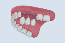Ve vybraných případech lze nahradit každý zub samostatným implantátem. Častěji se ale používá implantátový můstek, kdy se mezi dva implantáty připevní více zubů. Tento přístup je: