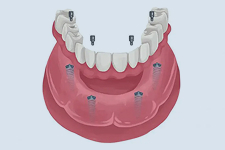 Díky pevnosti zubních implantátů a moderním celokeramickým konstrukcím lze dnes efektivně nahradit celý chrup s pouhými 3, 4 nebo 6 implantáty, které pevně drží 12 až 14 zubů v jedné čelisti.